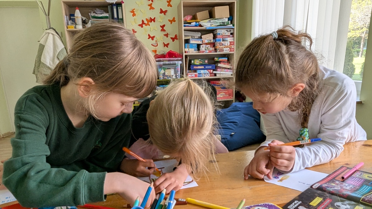 Artėjant Vaiko dienai mokyklos Dienos centro šaunios vadovės Greta ir Kamilė vykdė projektą "Vaikai pasaulyje". "Kartu su vaikais pasidarėme žemėlapį, domėjomės, kaip gyvena vaikai pasaulyje, kokie jų pomėgiai. Tuomet piešėme jiems atvirukus ir rašėme palinkėjimus, kuriuos vertėme į tos šalies kalbą",- pasakoja Greta. Veiklose buvo sudėta daug mažų širdelių šilumos. O ir prasmė - didžiulė!