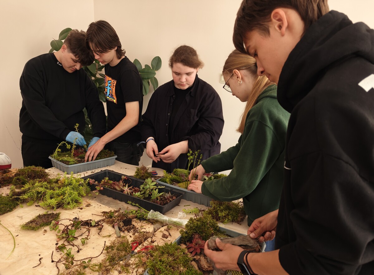 Antradienį tyrinėjo tvaraus miesto principus taikydami matematikos žinias ir ekologiškus sprendimus, ruošė ir pristatė angliškus tekstus, piešė, klijavo ir diskutavo. Jie identifikavo energijos vartojimo vietas, kūrė ir programavo „Micro:bit“ prototipus, tyrė šilumos izoliaciją žaliuosiuose stoguose bei kūrė jų maketus, o visus rezultatus pateikė lentelėse, skaidrėse, reportažuose.