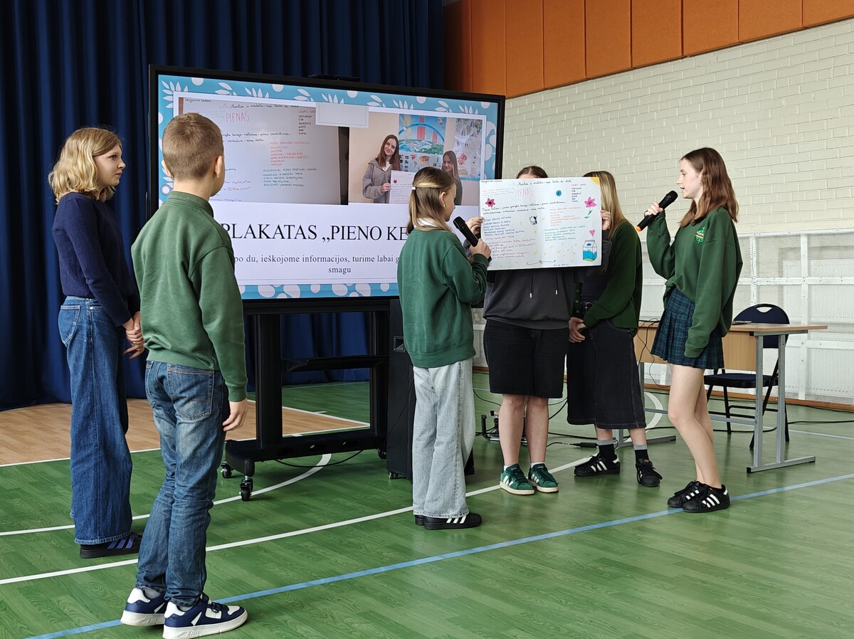 Ketvirtadienį visą dieną aktyviai tyrė, analizavo ir kūrė: skaitydami maisto produktų etiketes jie atrinko dažniausiai naudojamus cheminius priedus, skaičiavo kalorijas 100 g porcijos, sudarė palyginamąsias lenteles, vykdė apklausas, kurių rezultatus pateikė diagramose. Dienos pabaigoje mokiniai pristatė rezultatus, aptarė skirtumus tarp vietinių ir importuotų produktų, tiekimo grandinės įtaką ir pasiūlė sveikesnes bei aplinkai draugiškas alternatyvas.
