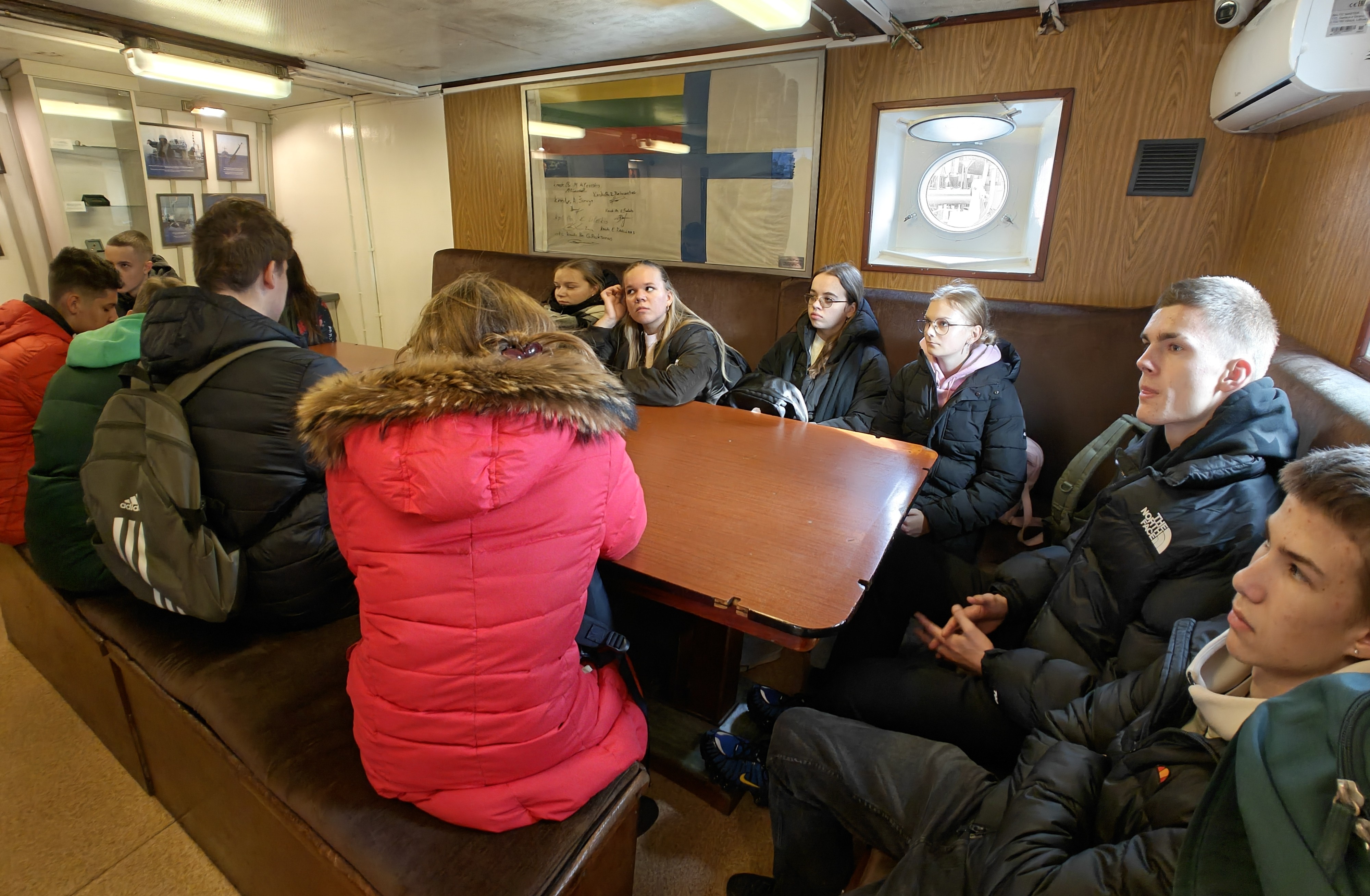 Penktadienį 10 klasės mokiniai su klasės auklėtoja Inga Šunauskiene leidosi į turiningą edukacinę išvyką į Klaipėdą, kur jų laukė pažintis su Lietuvos kariniu priešmininiu laivu M52 „Sūduvis“ ir gyvąja jūros gamta.